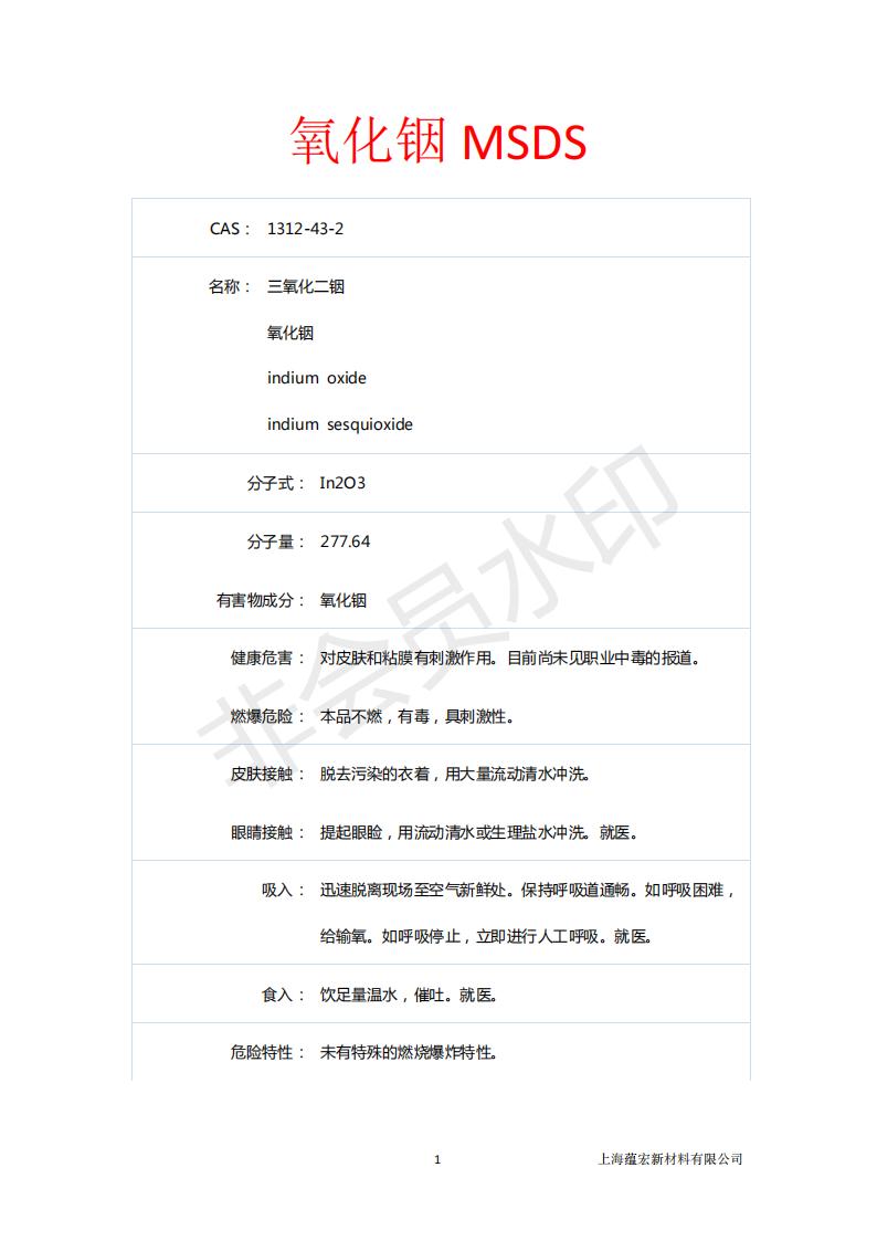 氢氧化铟氢氧化铟(In(OH)3)是一种白色粉末。它有两种形态:晶体和细粉。它溶于无机酸,但不溶于水。晶体粉末是尺寸为1到5微米之间的立方体晶体。细粉则是较小的初级粒子(0.1到1.0微米),其形状不一,从圆球形到椭圆球形都有。2025-09-09 -